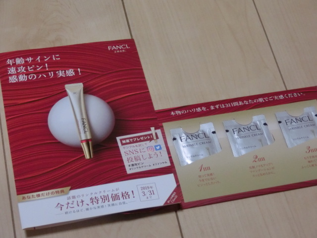 1月末に届いた、リンクルクリームのサンプル。おっと!まだ使っていませんでした!たまに買う美容雑誌も、リンクルケアに関する記事が多いと思いました。老けたくないです・・・って、どうしても年は取るものなのに「劣化」って、誰が言い出したのでしょう(-_-;)