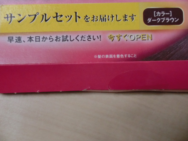 応募した、カラートリートメントのサンプルが届きました。10万人が当選するとはいえ、外れる方もいるのでしょう。ところで、届いたパッケージの「サンプルセットをお届けします」の部分だけシールが貼られています。「ご応募頂いた」の字を隠してあるのは、応募したことを隠したい人への配慮?