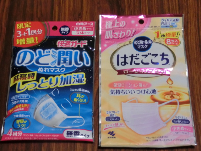 愛用していた、写真右のマスク、いつの間にか生産終了。どこにも売っていない理由判明!仕方なく、似たような形状のマスクを割引クーポン使って購入しました。写真左のマスクは、就寝時用。使い慣れないので、昨日は途中で外してしまいました。年明けまでに治したいです。親戚来るし(^_^;)