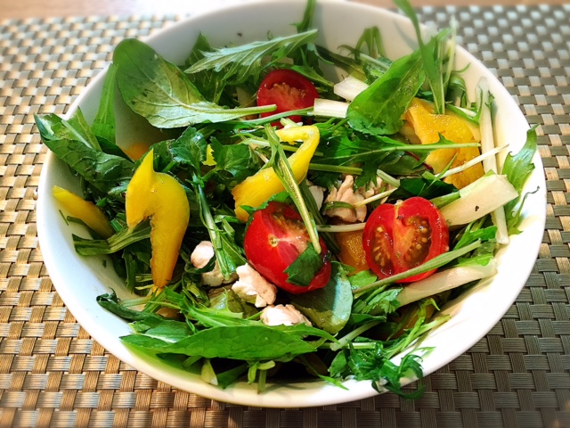 本日のモリモリサラダはチキンとパクチー(^^)