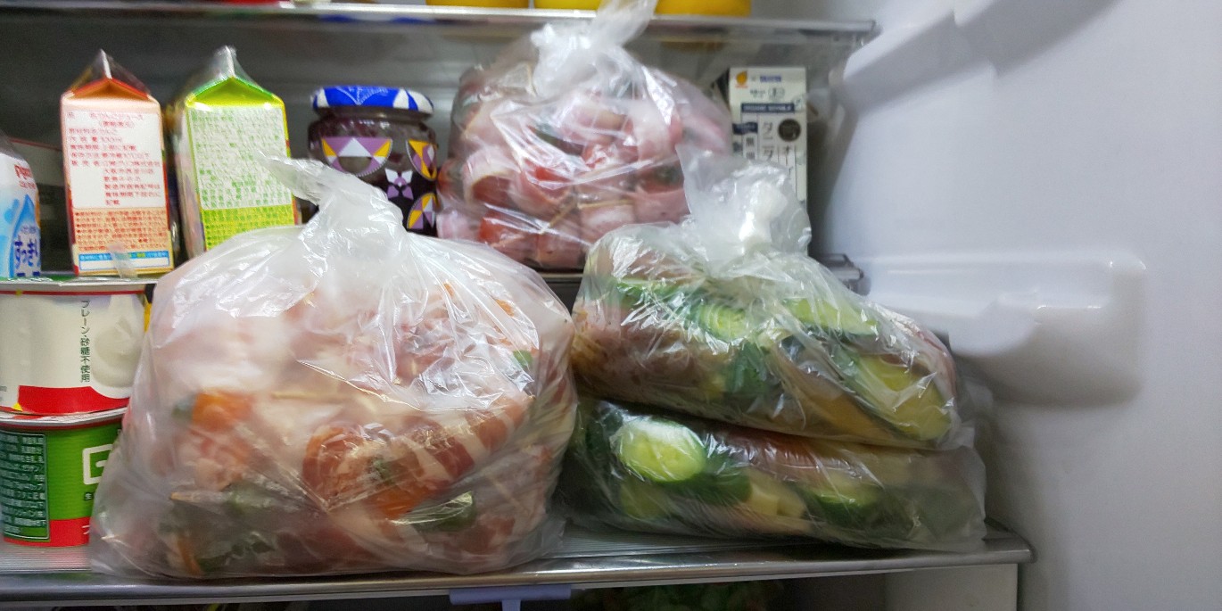 他はミニトマトのベーコン巻きと、きゅうりと茗荷の漬物です。