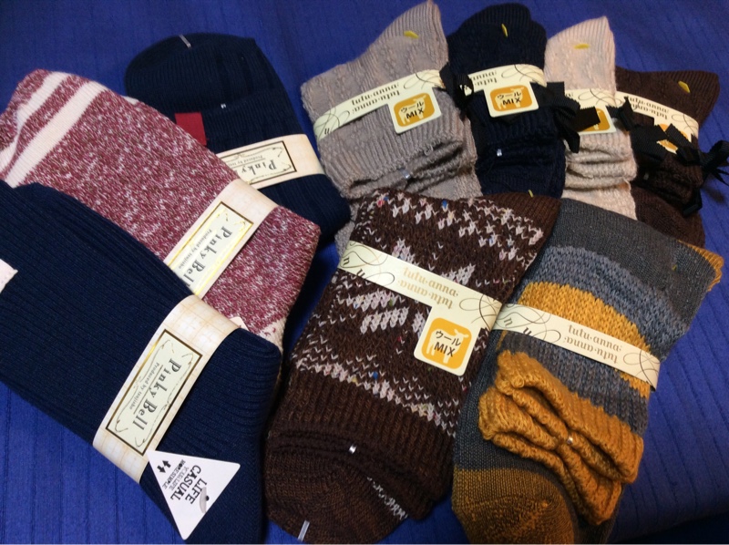 チュチュアンナとPinky Bellでソックスを買ってきました。セール中で3足で580円と500円でした。冬物のウール素材とコットン素材のソックスを大人買いしてきました。誰かにプレゼントしようかなぁ・・・