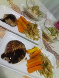 見た目は普通のハンバーグですが、半分以上は肉じゃなく、豆腐とみじん切りした野菜。