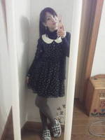 紺×白って着やすい色ですよね.・*このワンピースはウエストにゴムが入っているので、スタイルもバッチリに見えます(*^_^*)冬に白色が入ったお洋服を着ると、可愛らしい印象になるので気に入っています♪