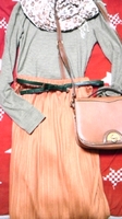 オレンジのプリーツマキシスカートはいろいろなコーデにできるので購入してよかった。