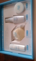 ゴージャスな箱に入って登場しました。中身はクレンジングオイル・ソープ・ミスト化粧水・アクアレイナ(オールインワンゲル)です。うーん、私には(40代)ちょっと潤いが足りないというか、しっとりとはするんですが持続性がなかったです。独特のオールインワンゲルの香りが普段無香料を使っている自分としては気になるところ。もっと若い人向けかな?と思いました。もっとすーっと浸透すれば言うことなかったんですが。星は三つということで。 |