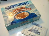 | 輸入物のホットチョコレート(ココア)です。マシュマロ入りのタイプ。お湯を注ぐだけで美味しいココアの出来上がり!マシュマロがじわ〜っと溶けて、これがまた最高に美味しいんです☆冬には欠かせない、リラックスドリンクです。1箱500円くらいで売られています。中身もたっぷり入っていて、この味でこの値段は安い!横須賀の米軍基地周辺には当たり前のように売られていますが、最近は輸入物のお菓子などを売ってるお店でも見ますよ。是非!雪の降る夜に♪ |