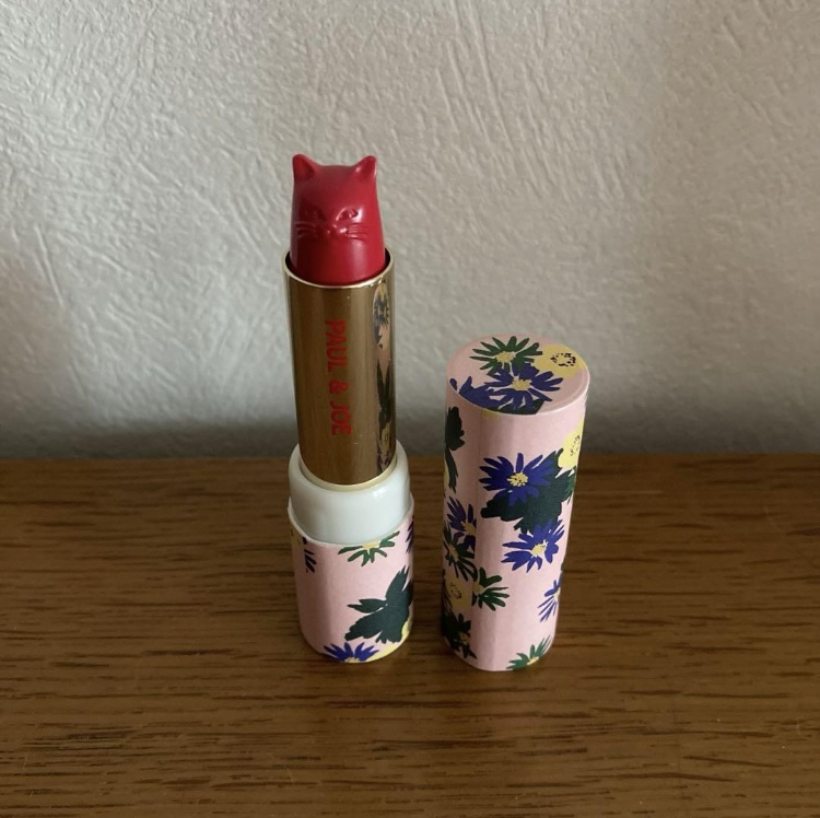 ポール&ジョーのコフレ口紅限定のリップスティックとケースです。 猫型がとても可愛い♡だけではなく意外と塗りやすいのが気に入っています。ルビーレッドのお色は濃く見えますが、リップブラシを使わずこのまま唇に塗り馴染ませるとちょうど良い発色です。 ケースは紙製なので使用しているうちに消耗しそうなのが少し残念です。