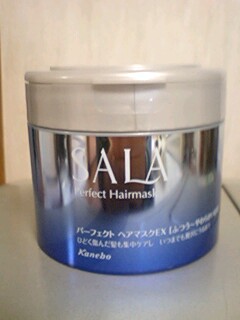 サラのパーフェクトヘアマスク(ふつう〜やわらかい髪用)です。リンスやコンディショナーの代わりに使います。 SALAって何となく子どもっぽい匂いでシャンプーとかは苦手だったんだけど、これは香りも気にならなくていい感じです。2〜3分蒸しタオル状態にしてから流すとしなやかな髪になるので、乾燥の激しい季節にときどきメンテします。