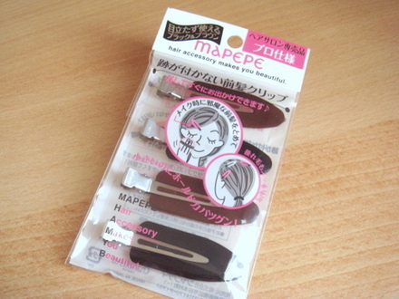 おススメのヘア用品は、 ドラッグストアや、ショップインなどで売っている 跡がつかない前髪クリップです。 お化粧するとき、 お化粧直しするとき、 オフィスで仕事するとき、 前髪が邪魔で、クリップで止めると、 必ず変な跡がついてしまって、 その後の前髪が最悪なことになることが多いですが、 これは、商品名の通り、 跡がつかないので、とってもいいです。