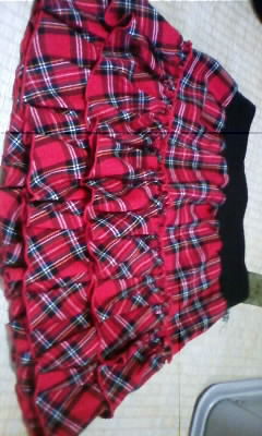 赤のチェックスカートだよ!! うちのお気に入りだあ★ 一目ぼれして買っちゃった!! 値段も1000円だったし 良いやあって思って買っ ちゃった´'*2段フリルが 可愛いーの!!着るともっと 可愛くふわあってなるの!! 春の出番だぜっ★