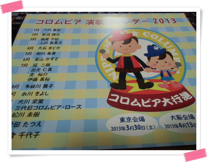 2013非売品演歌カレンダーです(゚∀゚)w 母の大好きな氷川君が写っていたので母にプレゼントです^^