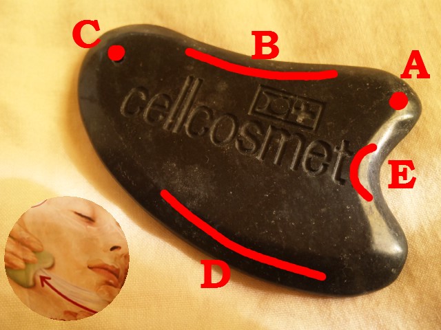中国の美容法『刮痧(かっさ)』 皮膚の上にプレートをすべらせることにより、停滞している老廃物やリンパ液の流れを促し代謝をあげ活性化を目的とされています。 それをヒントに、スイスのセルコスメとたかの友梨がコラボで開発したのが、顔用マッサージプレート「かっさプレート」 素材は、石か陶器だと思います。 微妙なカーブを組み合わせた独特の形によって、リンパを流したり、顔のコリをほぐしたり、フェイスラインを引き上げたりすることができます。 まずはマッサージクリームを顔全体に伸ばします。 そして...