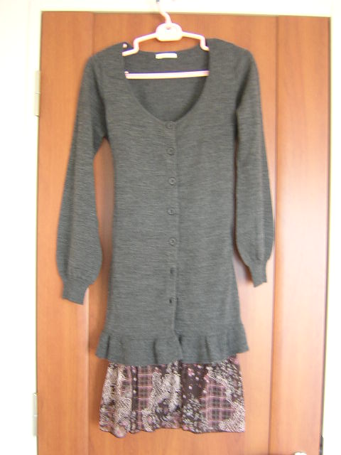 今年の冬バーゲンにてGetしました。 ロングカーディガンを持っていなかったので、ほしくて探していたところ、ワンピつきのこちらを購入。 店員さんもおっしゃっていましたが、ワンピはシフォン素材なので、春先まで着られそうです。 結構お得に手に入りました。。