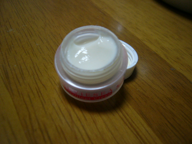 サンプル使用です。 お風呂のあと、非常に汗をかいていて使ったのでちょっとべとつきました。 わたしは汗かきなので、うるおうという意味では顔全体には必要ありませんが、目元の乾燥したところにはよいかも。 でもたいていのクリームで湿疹がでるのにこれはでませんでした。