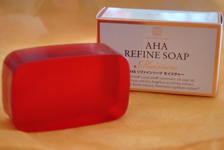 赤色のとってもきれいな石鹸なんですよ あわだても、少しの量でかなり泡立つし、とってもきめがこまかいですね。 なので、その泡であらうと、とってもきもちがいいです。 また、洗顔後の化粧水がすぐにお肌に馴染みます。すうーっと、入っていく感じで、 とっても嬉しいです。 私の肌って、化粧水をつけても、上にのせている感じしかないんですよね。 ところが、これで洗顔したあとのお肌は、いままでの自分のお肌とはまるで別物・・・ってかんじなんですよね。 姉妹品で、AHAリファインソープというのがあるのですが、こちらか...