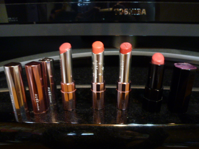 秋に合いそうな色がそろったルージュのサンプル。 落ちにくいタイプと潤うタイプが試せます。 どちらの機能も捨てがたいですが、潤うタイプは付属のスティックでつけ、グロスっぽい仕上がり。秋色のリップをそろそろ買いたくなりますね。