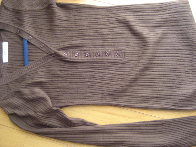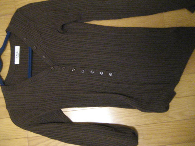 この冬ネットのバーゲンで買ったニットです。 深めのVネックが首回りをほっそり見せてくれます。 ボタンで開き具合を調整でき、体にフィットするデザインなので、ジーンズにもスカートにも合わせやすいです。 茶色のほかに色違いもあったので、一緒に買えばよかった!