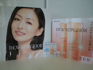 秋コスメ その3 サンプルでもらいました。 10月下旬発売だそうです。 カネボウでも、ちょっと高級志向の、DEWシリーズにとろみのある化粧水がでました。 とろみがあって、しかもべたつかず、しっとりと、スーッとしみこんでいきます。 サンプルでも結構量が履いていてお得です。 あと、サンプルはなかったんですが、クレンジングクリームも店頭で試しました。これも、さっぱりした使い心地で、かつべたつかないけど、保湿するって感じでいいです。 発売したら買おうかな?