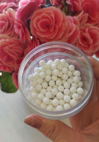 白い箱に入っていて、清潔感を感じます。 箱を開けてみると、透明感のあるボトルで、上部が透けていて、下部が純白になっていて綺麗です。 ロゴとマークがゴールドで、ゴージャスな印象です。 キャップもゴールドで、素敵です。 ボトルから見える白い粒がとっても綺麗です。 小粒で真ん丸な白い粒です。 キャップを開けてみると、ミルクコーティングされているので、ほんの〜り甘く心地よい香りです。 ほっこり優しい気分になれました♪ 白いスプーンつきで、一度に5粒が取り出せるようになっています。 ボトルに手を入れずに、粒...