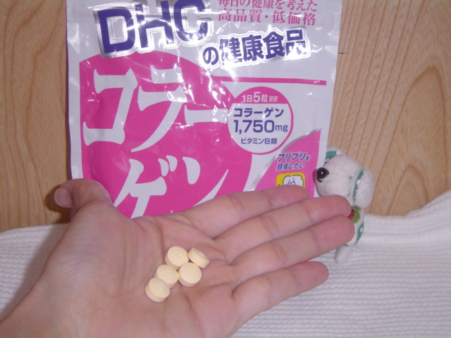 DHCのコラーゲンサプリメントです。 普段は就寝前に粉末タイプのコラーゲンを牛乳などに溶かして飲んでいますが、早く眠ってしまいたい時にこのサプリを飲んでいます。 溶かすタイプは溶かしたり飲んだ後、洗い物がでるのでちょっと面倒。でも錠剤だったら手早く摂れますよね。 30代になって、やっぱり20代に比べるとお肌のハリがなくなってきてるので毎日せっせと、コラーゲンを摂っています。 1日に5粒目安なんですが、コラーゲンは就寝前に摂った方が良いと聞いたことがあるので、夜にまとめて飲んでいます。 ★−1の理由...
