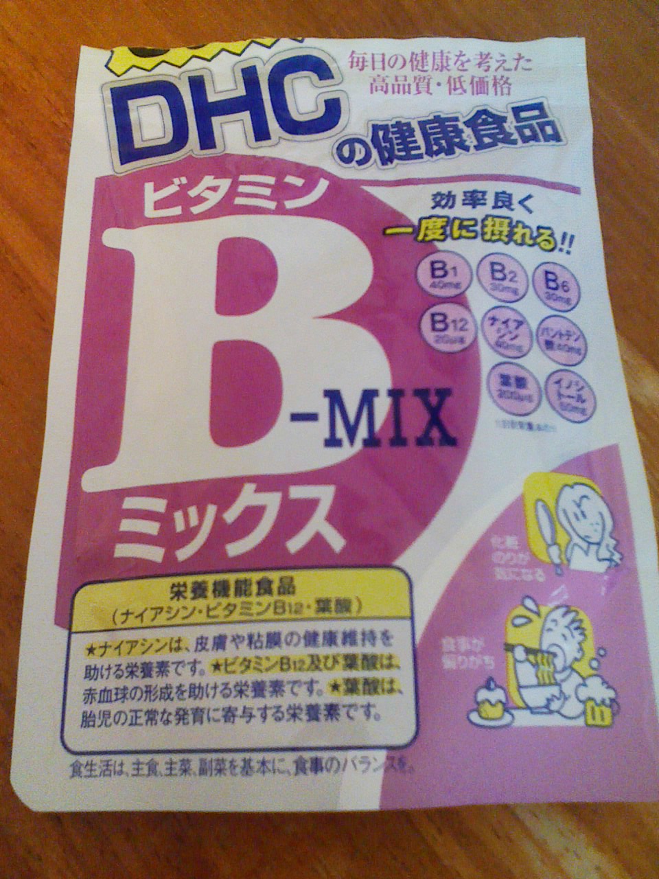 肌荒れがひどかったので、ニキビに効くというビタミンBのサプリを探していました。ビタミンB群をまとめて効率よく摂れるというところに惹かれて購入。 1週間ぐらい飲み続けたら、赤いニキビが減ってきました。順調に効いているようです。同じDHCシリーズのビタミンCも一緒に摂るようにしたらさらに肌の調子がいいような気がします。 本当は食べ物でビタミン摂取する方がいいのでしょうが、食べる時間や種類が片寄りがちで、どうしてもビタミン不足に陥りがちなので、重宝しています。