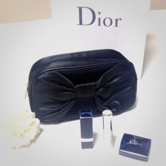 Diorのクリスマスコフレ♪ リボンのサテンポーチがとても上品です(*^^*) 人気の定番パレット、サンククルール734のミニサイズと まつ毛美容液が必ず付いており、それらに加えて好みのルージュかマスカラの1アイテムを選択できます☆★ 私は新作のルージュにしました♪ルージュはパッケージも可愛くて色味もバリエーション豊富なのでとても使えます(*^^*)