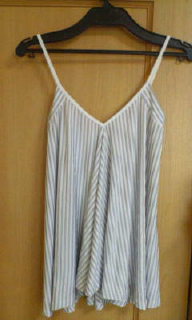 これもバーゲンでゲット↑しかしこれは買う予定ではなかったんです 店に行ったらこの子がいて一目ぼれして購入 4900円でした もとがいくらなのか忘れました 裾がふんわりゆったりのAラインでふんわり系ってあんまり持ってなかったしグレーのストライプがとにかくかわいくて♪涼し気な色だししわになりにくいのがいいです
