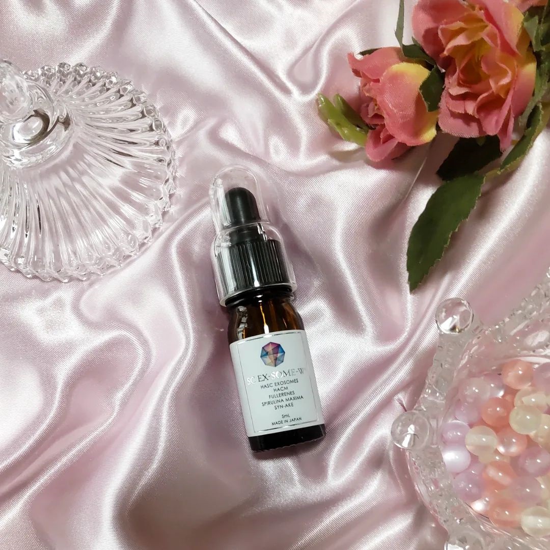 エクソソームとナチュラルフラーレンなど配合の美容液。 外箱にナチュラルフラーレンマークつき。 小瓶でシワ、シミなど気になる部分に1〜2滴なじませます。 少しとろっとしたテクスチャですが、少量でもみずみずしく伸びて肌なじみがよい。 無臭でクセがなくて、さっぱりした使用感。 べたつかず、普段のスキンケアにも取り入れやすいです。 目元だけでなく首の真っ黒なシワに使ったら調子いい〜♪ 稀少な成分なのでお高いのは仕方ないのでしょうが、 1本で約80滴だとすると・・1滴がなんとも贅沢。 年齢で夏の終わ...