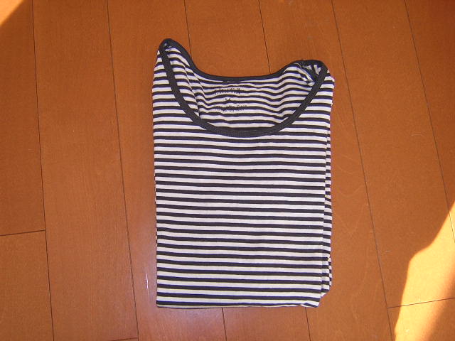 こちらはGLOBAL WORKでの戦利品です。 最近は、なんでもかんでも高めのブランド系ではなく、カジュアルなものなどは、カジュアルブランドで選ぶことが多いのですが・・・ ユニクロなどよりおしゃれっぽいところが、GLOBAL WORKの好きなところです。 値段は安い!! 定価が1900円でしたが、バーゲン価格で、2枚で1200円!!半額以下で手に入りました。