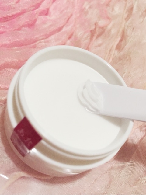 今回、使用させていただいたのはトライアルサイズの10gタイプ。 【10グラムで約20日間使用することができるそうです】 パッケージには、専用のスパチュラと、 手のひらより一回りほど小さなジャータイプのクリームが入っています。 クリームは白く、見た目はラードのようなちょっと固めの テクスチャーをしていて、香りはありません。 スパチュラが刺さるくらいにしっかりとした硬さがあるので 使う分がとてもすくいやすいですね。 。。。が、だいぶ固めなので肌にのるのかな?と心配になりましたが スパチュラで...