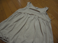 ハニーズで500円で買いました★ 写真で見てわかるように、タンクトップの裾が バルーンになっていてとても女の子らしい服です。 バルーン部分は写真ではわからないですが、 ベージュの細いボーダーで、繊細な可愛さがでています。 中にTシャツなどをきれば、春らしい可愛い コーディネートができますね♪