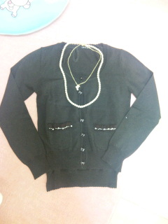 アクセ付きのアンサンブル。 インには半袖と袖付きが嬉しいです。 ポケットの部分にはビーズの刺繍がキラリと☆ ボタンにはリボンのボタンで☆ と、ちょっとしたとこに女心をくすぐるアイテムで冬ファッションも楽しめます。 色も濃いめのブラウンと合わせやすい色です! 私のお気に入りは白いスカートと合わせるコーデ。 インナーよりもカーディガンが短めなのは、ウエスト部分を見せ女らしさを強調出来るデザイン。 何よりアクセ付きが嬉しいですね。