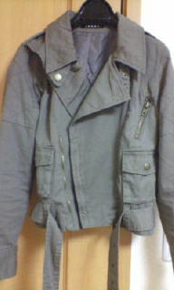 INGNIのカーキ色のライダースです 昨年ものすごくはやりましたね この春も引き続き薄手になってでていますね♪ もともとライダース好きなので沢山でてくれて嬉しいです☆ 4、5千してたものですが1990円で買えました 最近暖かくなってきたのでダウンを脱いでライダースが大活躍しています 薄ピンクのライダースも欲しいなぁって思っています