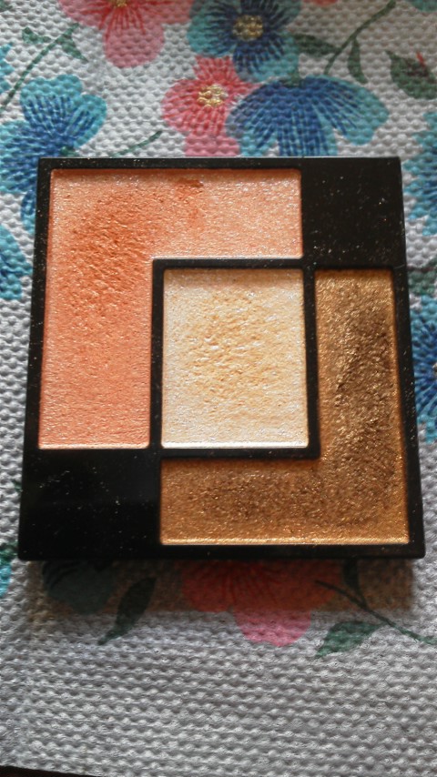 ケイトのアイシャドウは低価格のためとても購入しやすいです・・! いつもならブラウン揃いのを買うのですが・・オレンジ系の混ざったのを購入。 いやはや、御見それしました。こんなに発色よかった?!ってくらい色づきがよいです!! 重ね付けでも変なふうに混ざらずきちんと馴染む。 しかも、白い部分の効果には驚きです。少しのせただけで目元が一気にきらびやかに・・! パーティーシーンなど華やかな場で使えばドレスに劣ることなく きらびやかな目元が演出できると思います。 ただし、ちょっときらびやか過ぎるので...