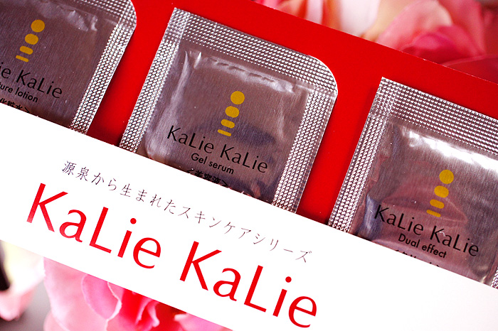 温泉コスメ「KaLie KaLie」のスキンケア3種類(モイスチャーローション・ジェルセラム・デュアルエフェクト)のサンプルです。 どれも浸透しやすくなめらかな塗り心地、おまけ保湿効果もアリで、使っていてすっごく気持ちいい♪ 「ミネラル成分」と「マイナスイオン」を最大限に活かした温泉コスメなだけあって、使い心地が優しくて癒されます。
