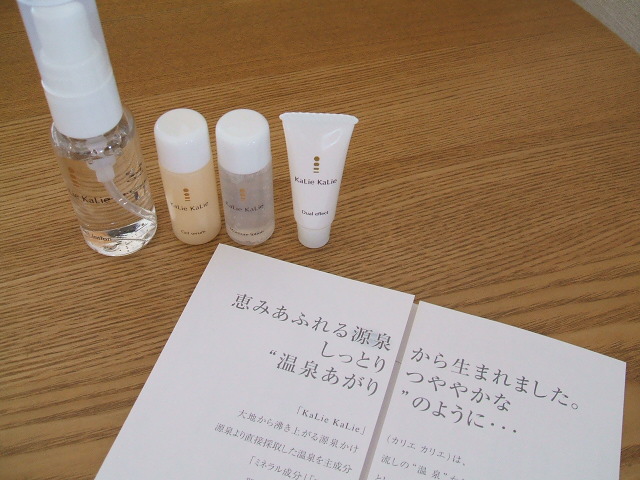 化粧水、美容化粧水、美容液、クリームのシリーズです。 主成分が温泉らしいので、乾燥肌のわたしでも使用した後はしっとりぷにぷにになった気がします☆ 特に気に入ったのは美容液で、少しとろみがあって、肌になじみやすいと思いました。かといってべたつかず、さっぱり使えるので、にきびなどの心配もなさそうです。 乾燥肌の人にオススメです☆★