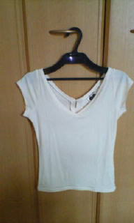 こちらもマイハニービーので大のお気に入りです とゆーかマイハニービーが大のお気に入りなんです(笑) 白とゆーより若干クリームがかった感じが上品さをだしてていいです 3900円でした 首周りはわりかしあいててキレイに見えます カタログではハイウエストのタイトスカートとパールのネックレスを合わせててちょっとしたパーティや二次会などにもいいなぁって思いました