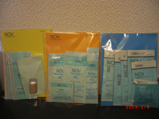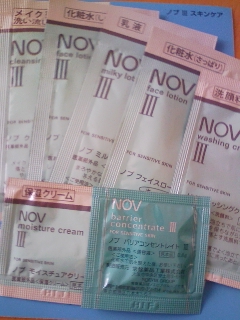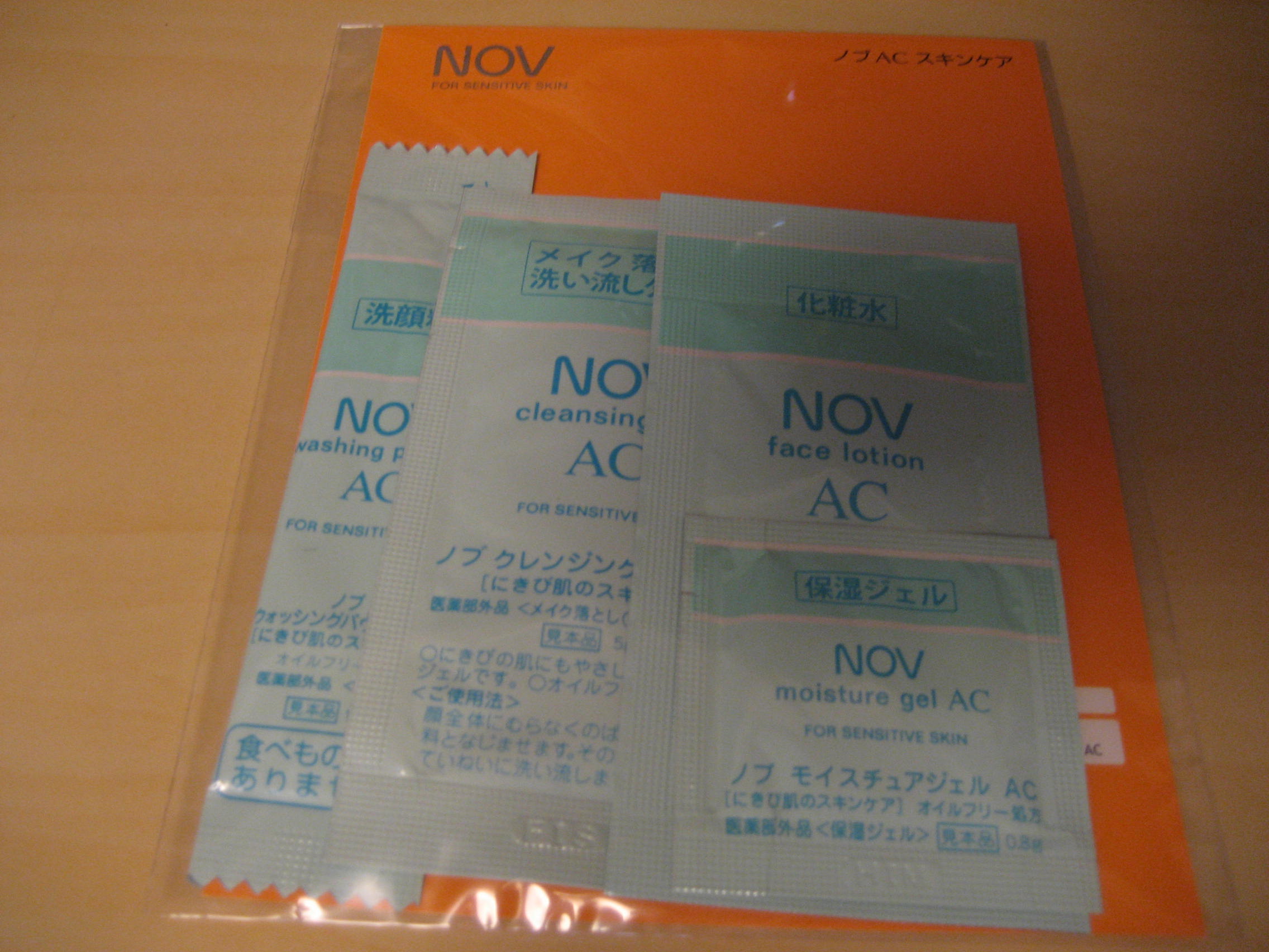 今回のサンプル請求は4種類の中から3種類選んで請求できた。とりあえず混合肌で生理中ニキビもできる私は保湿のNOV轡好ンケアセットと、大人のニキビのNOV ACスキンケアセット、UVセットの3種類を請求した。 早速保湿のサンプルから。 クレンジングはクリーム状でねっとりしてる感じ。私のマスカラは残念ながら落ちなかった・・・。いつもオイルクレンジングでスルっと落とす感じなのでなんだかべとべとして苦手な感じ。 洗顔フォームはネットを使うとそこそこの泡立ちをみせるものの意外にしぼむのも早い。泡切れはそ...
