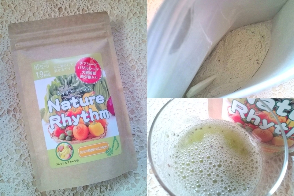 Nature Rhythm スーパーフードMIX健康酵素スムージー(フレッシュフルーツ味)を飲んでます。 チアシードやバジルシードが配合されていて、美味しく、手軽に、健康的にダイエットができるというから嬉しいですよね。 みなさんも話題のスーパーフードを手軽に摂取できるから試してみたいと思うでしょ? 約500種類の野菜・フルーツ等のミネラルと酵素を配合したスムージーで水と混ぜるだけでとても美味しく飲めるの。 美味しいフレッシュフルーツ味だからダイエット継続できますよね。 みなさんにもおススメ!