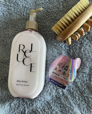 お試しさせていただきました 香水発想の癒しのボディケア? 透明感輝くツヤ肌に 美容成分配合 ◇ビタミンC*1(3-グリセリルアスコルビン酸(製品の抗酸化剤)) ◇ガラクトミセス*2(ガラクトミセス/シラカンバ樹液発酵液(保湿成分) 香りが可愛い ふんわりとした柔らかな香りに包まれます ミルクローションなので サラッとしたテクスチャーでベタつかない お風呂上がり 香りに癒されながらマッサージタイム