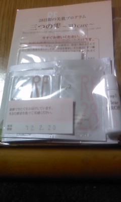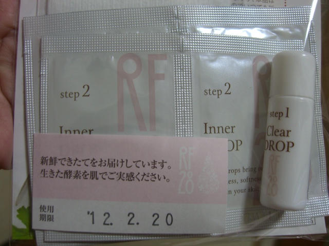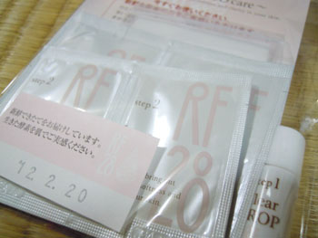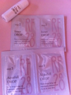 三つの雫のサンプルを頂いたので、早速使ってみました☆ 写真にもあるように、使用期限が!新鮮な化粧品って肌に良さそう。 角質ケア→美容液→化粧水という流れです。 角質ケアはまったく刺激がなかったんですが、翌日の朝には肌が柔らかくふっくらしてましたー。 RF28と聞くと、28歳以上の化粧品?と思いがちですが、 お肌の代謝の28日周期に合わせたケアで美肌を育むということだそうです。 使用感もコンセプトもわたし好みなので、使い続けたいなー、と思う商品でした。
