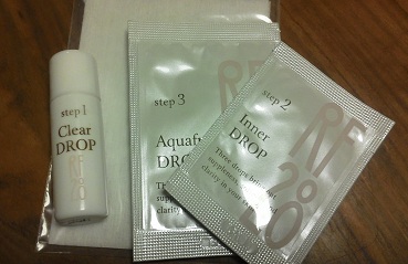 三つの雫のサンプル使ってみました! クリアドロップ(角質ケア化粧水)→インナードロップ(美容液)→アクアフルドロップ(保湿化粧水)の順で使用します。 角質ケア化粧水(中央のボトル)は敏感・乾燥肌用と普通・混合肌用と脂性肌用の3タイプあるようなので自分の肌に合ったものが選べそうです。 インナードロップはつけてみると、手に取った瞬間からふわ〜っとよい香りがしました。 べたつく感じはないのに肌がもっちりする感じです。 そしてアクアフルドロップをつけると、しっかりと保湿された感じがしました。 ついでに...