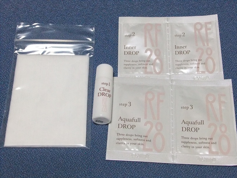 肌が生まれ変わるサイクルと同じ 28日間で使い切るというコンセプトのコスメ、 RF28「三つの雫サンプルセット」を 試してみました。 ふきとり⇒栄養⇒保湿でしっかり くすみが抜けそうな期待感があります。 ゲルっぽい美容液のあとに とろみのない化粧水を保湿に使うのが新鮮でした。 3つのステップが終わると 肌がかなりもちもちになりました! 顔のくすみが気になっているので、 な期待感のあるコスメでした。