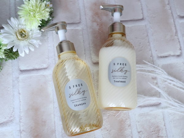 カシミアケラチン、ゴールデンシルク、プロポリス配合。シャンプーはゆるめ、泡立ちがよくフルーティミュゲの香りは弱めで男女問わずに使いやすそうな印象です。トリートメントは固め、髪の内側まで均一に塗るのが難しく、クシなどでなじませた方が仕上がりよい。べたつかずに、すっきりした洗い上がり。ドライヤーで乾かすと、しっとりなめらかな髪。毛先のゴワツキも気になりません。湿気でうねり、広がりやすいのがまとまってよい。ドライヤーで簡単にツルすとんとした真っ直ぐな髪になり、朝のセットがラクです。