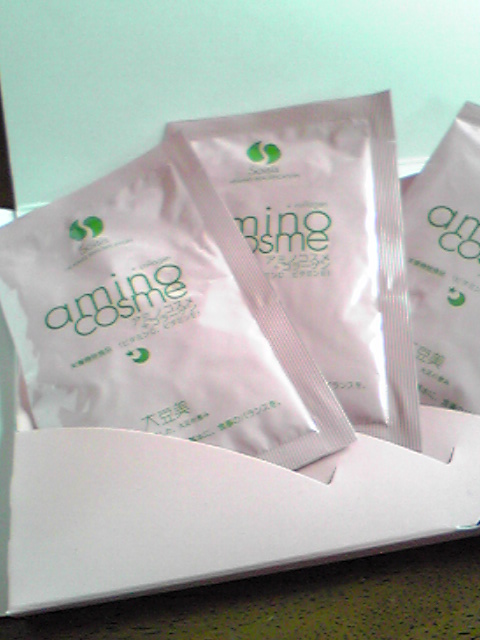 藤原紀香さんや、多くのモデルさんも愛飲している事で有名になった“アミノコスメ+コラーゲン” コラーゲン、大豆ペプチド、セラミド、各種ビタミンや乳酸菌を配合した美容粉末飲料です。寝る前に飲むと、翌朝のお肌が違いますよ〜。 お水に溶かして混ぜるだけだから簡単。柑橘系のヨーグルト味で、飲みやすいです あとは、お風呂上がりの代謝が活発になってる時に飲むのもおススメだそうです。 これを機会に、これからも飲み続けたいと思いました。 ありがとうございました♪