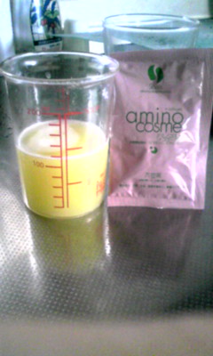 コラーゲンの粉末を飲んでいたのですが、味のないものでコーヒー等にいれてました。このアミノコスメ+コラーゲンは水に溶くだけで甘酸っぱく、夏の喉の渇きも美味しく癒してくれました。