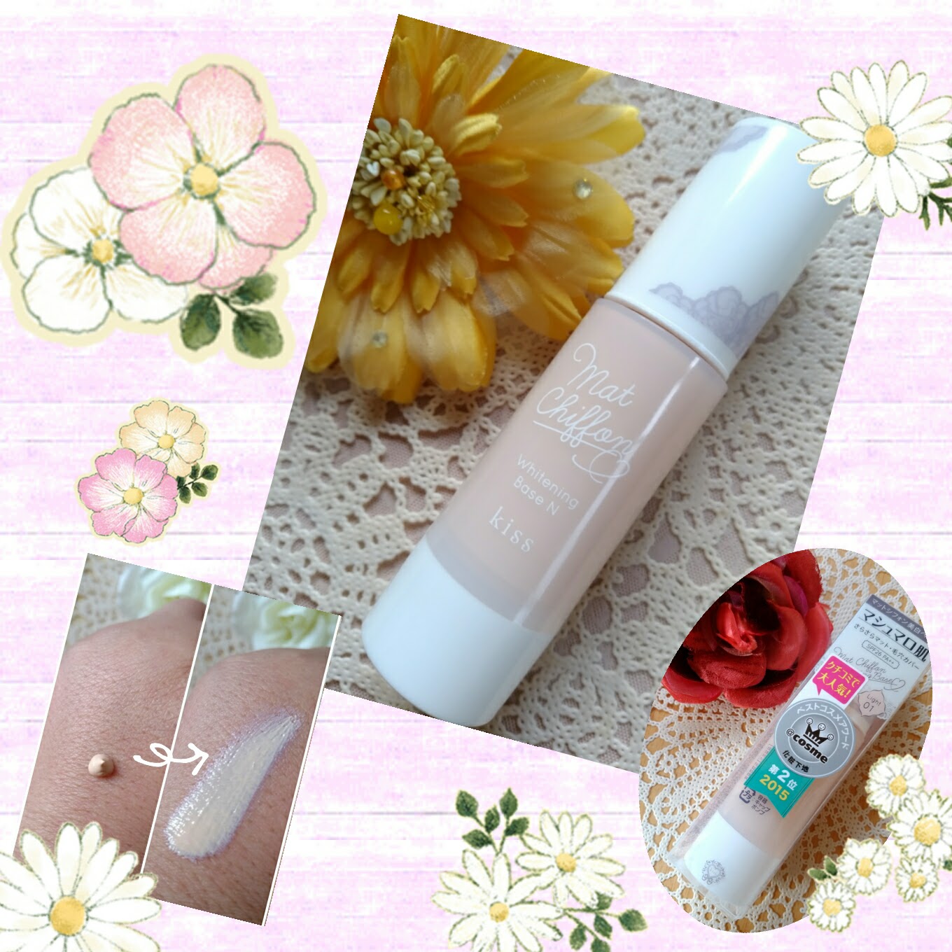 キス マットシフォン UVホワイトニングベースNは、 美白ケアをしながらテカリを抑えるサラサラマットベースです。 色は01 ライトを使用しました。 なめらかなテクスチャーのベースで、 伸びが良いのでなじませやすく、 べたつきもないので使い心地も良いです。 なじませたあとはサラサラ。 保湿成分も配合されているので、 サラサラなのに、乾燥を感じることはありません。 特に気に入っているポイントは ベースメイクがキレイに仕上がるところです。 毛穴や凹凸をカバーし、肌を整えてくれるので、 ...