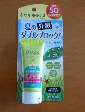 バズ ガードUVは 日やけを防ぐだけでなく、イヤな外敵から肌を守る 日焼け止めです。 ジェルタイプの日やけ止めでべたつきはありません。 伸びが良いのでなじませやすく、 なじませたあとは、さらっとしてくれます。 特に気に入っているところは、 高い紫外線カット力がありながら、 塗っている間の不快感がないところ。 肌に優しい使い心地が気に入っています。 また白いジェルですがなじませると透明になり、 白浮きしないところも良いなぁと思います。 日やけ止め特有のニオイもなく、 天然ハーブのさわやかな...