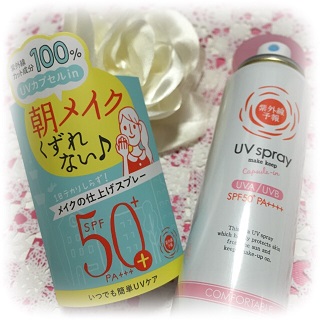 出かける前は メイクの仕上げにスプレーするだけで良いから簡単♪ 自転車で買い物に行くことが多い私は 日焼け対策はしていくけど帰りに塗り直しなどは面倒だからしていないんですよね。 持ち歩けるスプレータイプなら簡単だからトイレでシューッてできそう♪ 汗・皮脂に強いウォータープループタイプなので 自転車での汗程度なら大丈夫かなとも期待☆ 日本最高値のSPF50+PA++++としっかりケアできて 何度重ねても白くならないのも助かりますね♪ 気になったときにスプレーするだけでUV対策が完了できるのは嬉しい(*...